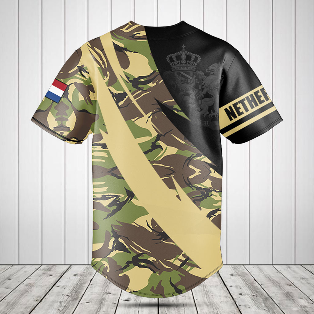 Personalized Netherlands Coat Of Arms Camo Fire Style Baseball Jersey