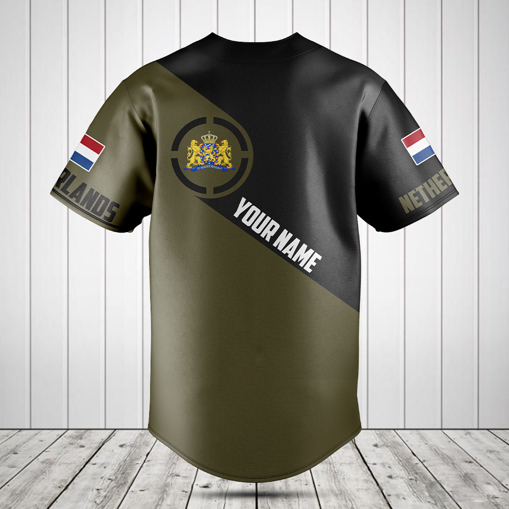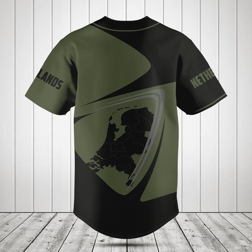 Personalized Netherlands Map Black And Olive Green Baseball Jersey