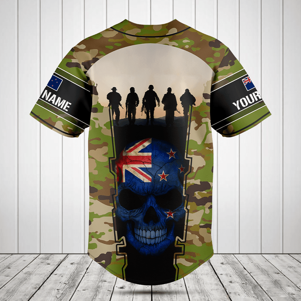 Personalized New Zealand 3D Skull Flag Camouflage Baseball Jersey