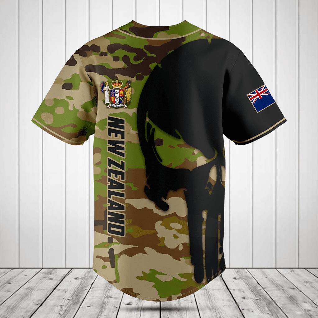 Personalized New Zealand Black Skull Camouflage Baseball Jersey