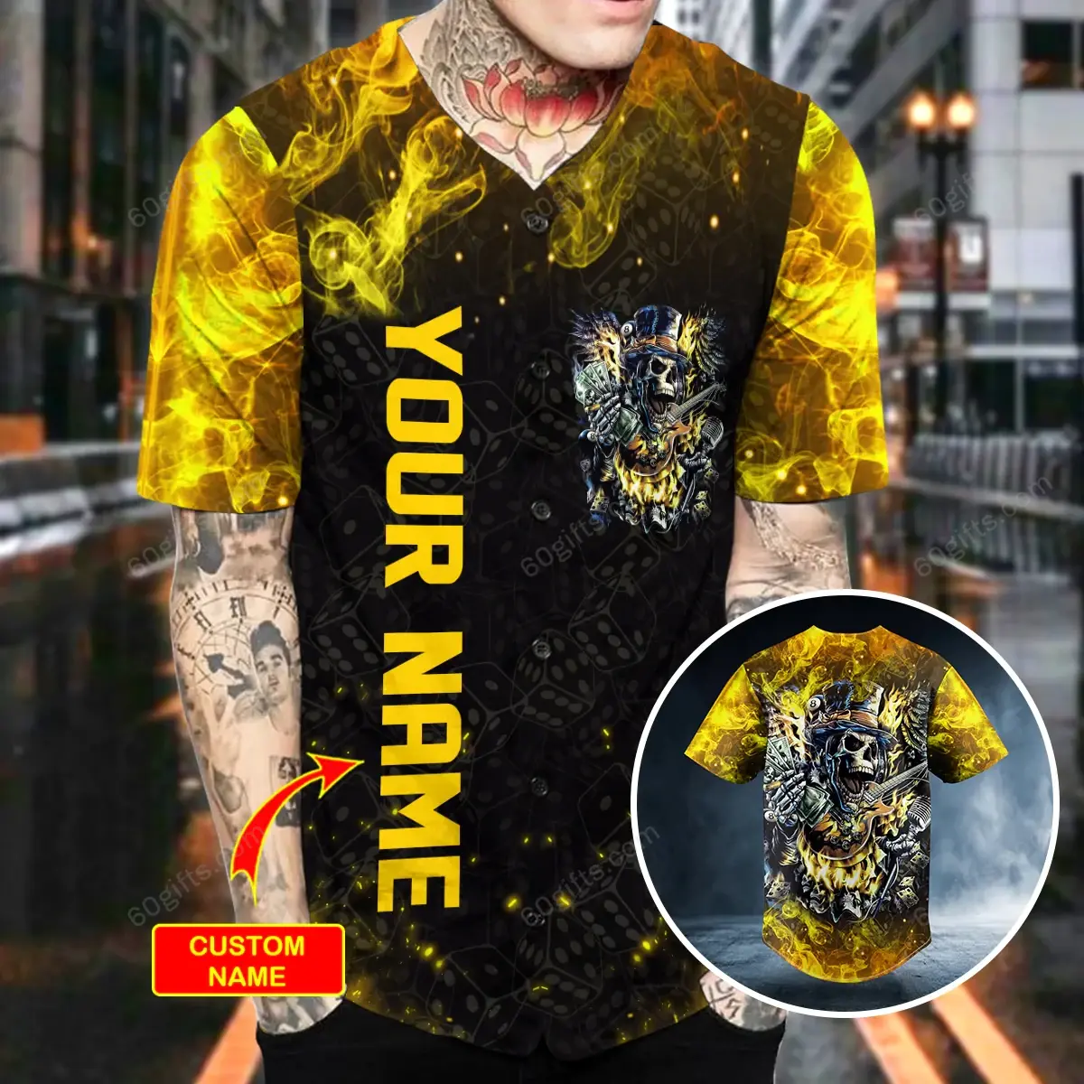 Personalized Punk Rock Gothic Hell Glow In The Dark Skull Baseball Jersey
