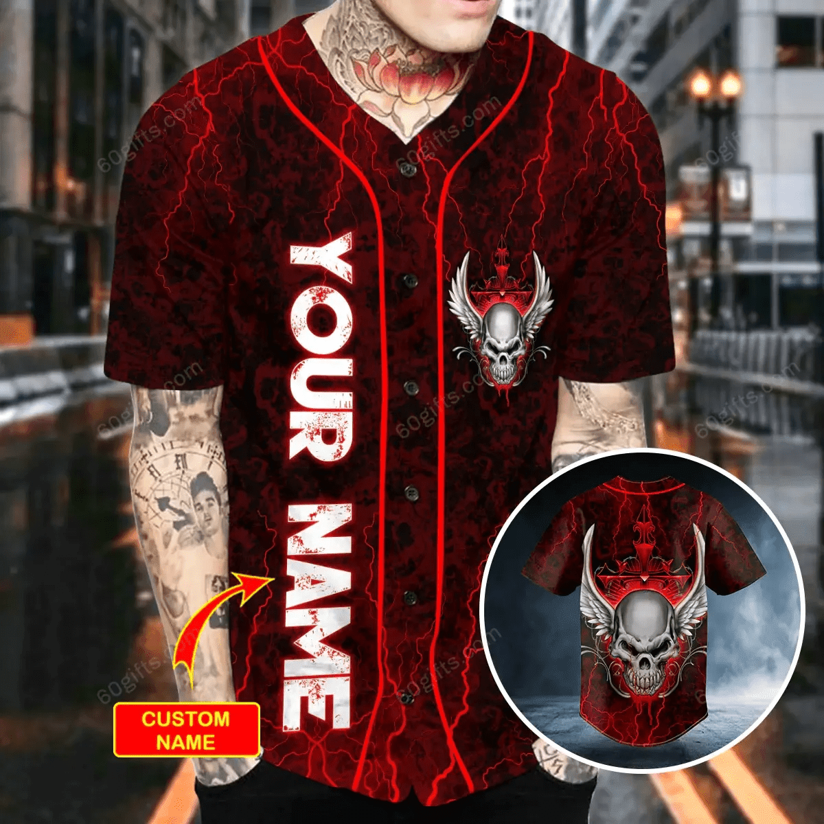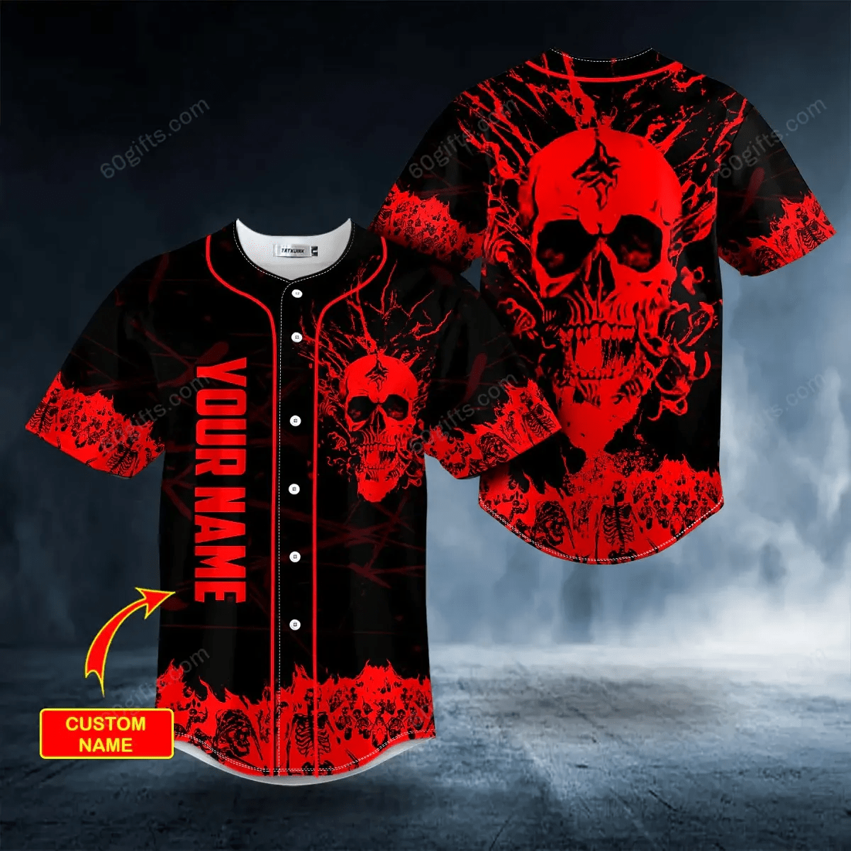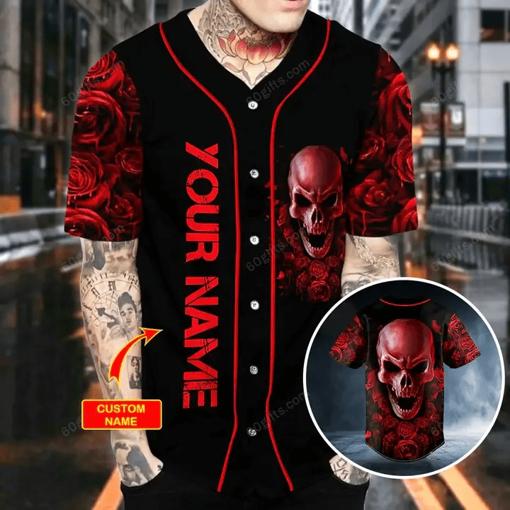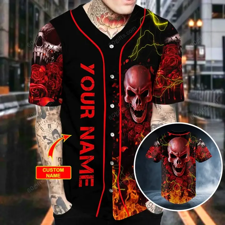 Personalized Red Rose Blood Lightning Fire Skull Baseball Jersey