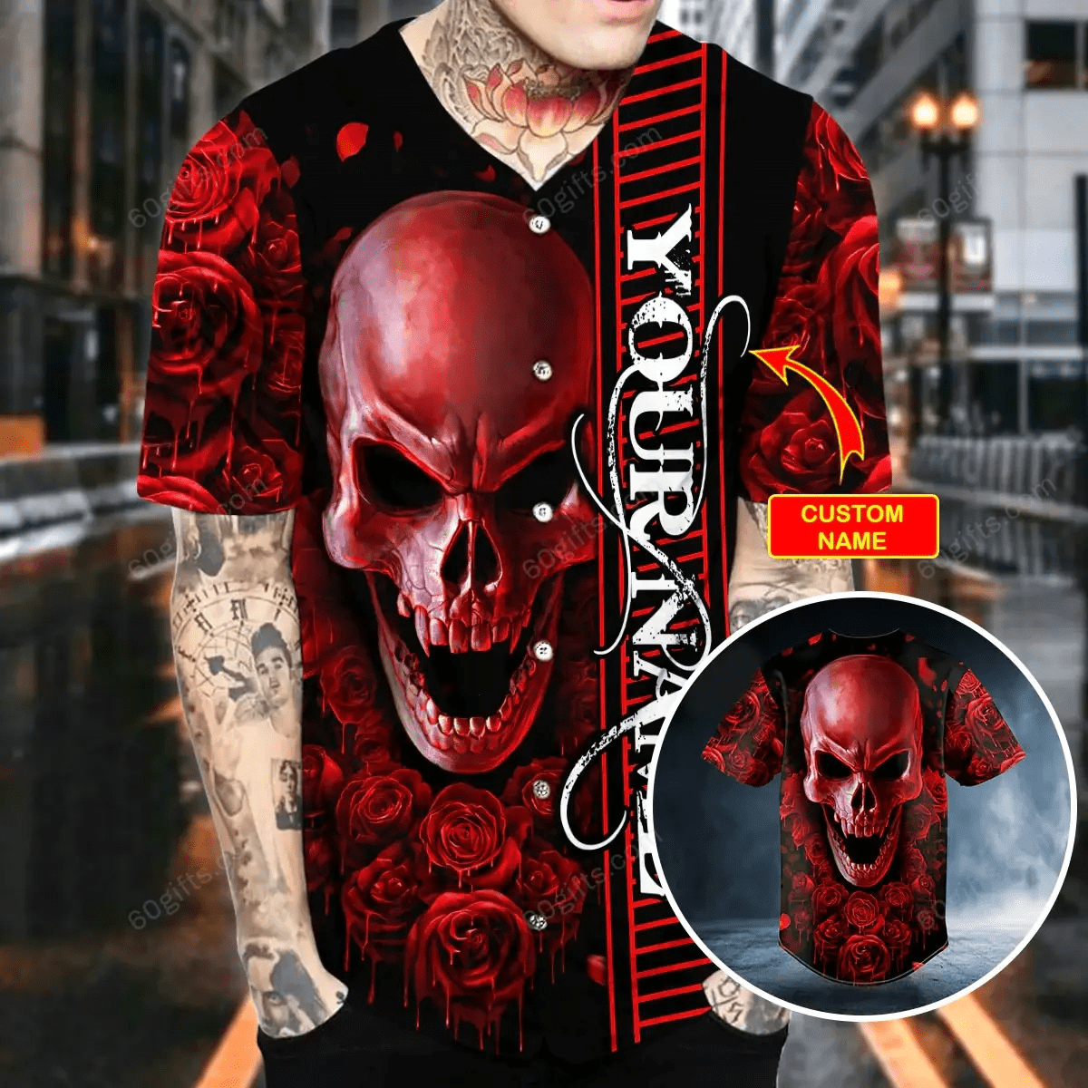 Personalized Red Rose Bloody Skull Baseball Jersey