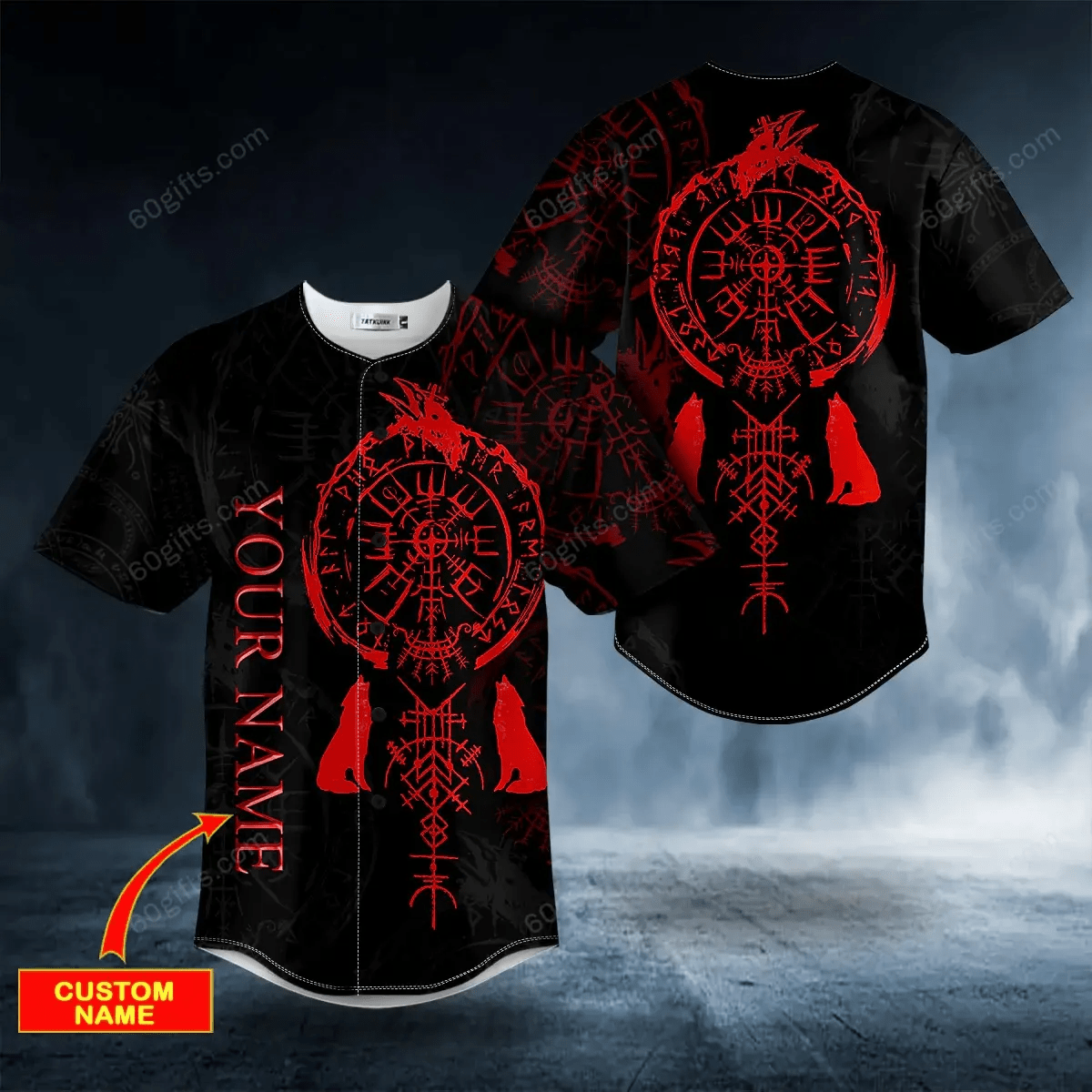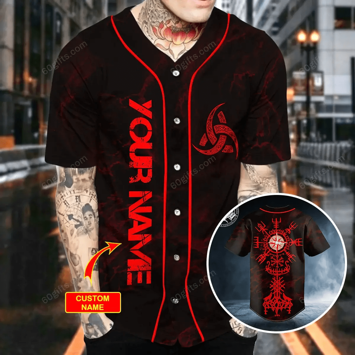 Personalized Red Runes Viking Compass Tattoo Baseball Jersey
