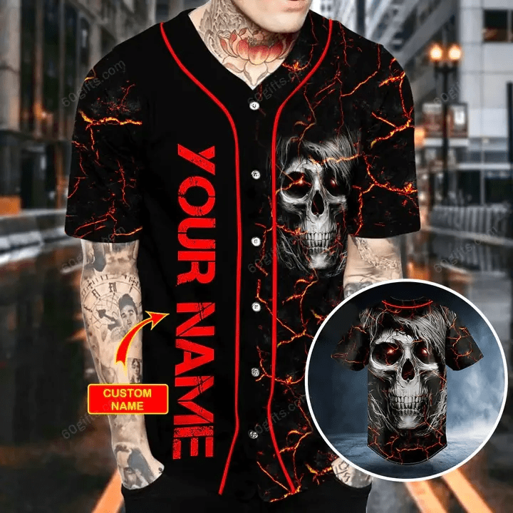 Personalized Rock Chang Crack Lava Skull Baseball Jersey