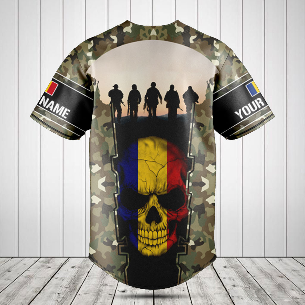 Personalized Romania 3D Skull Flag Camouflage Baseball Jersey