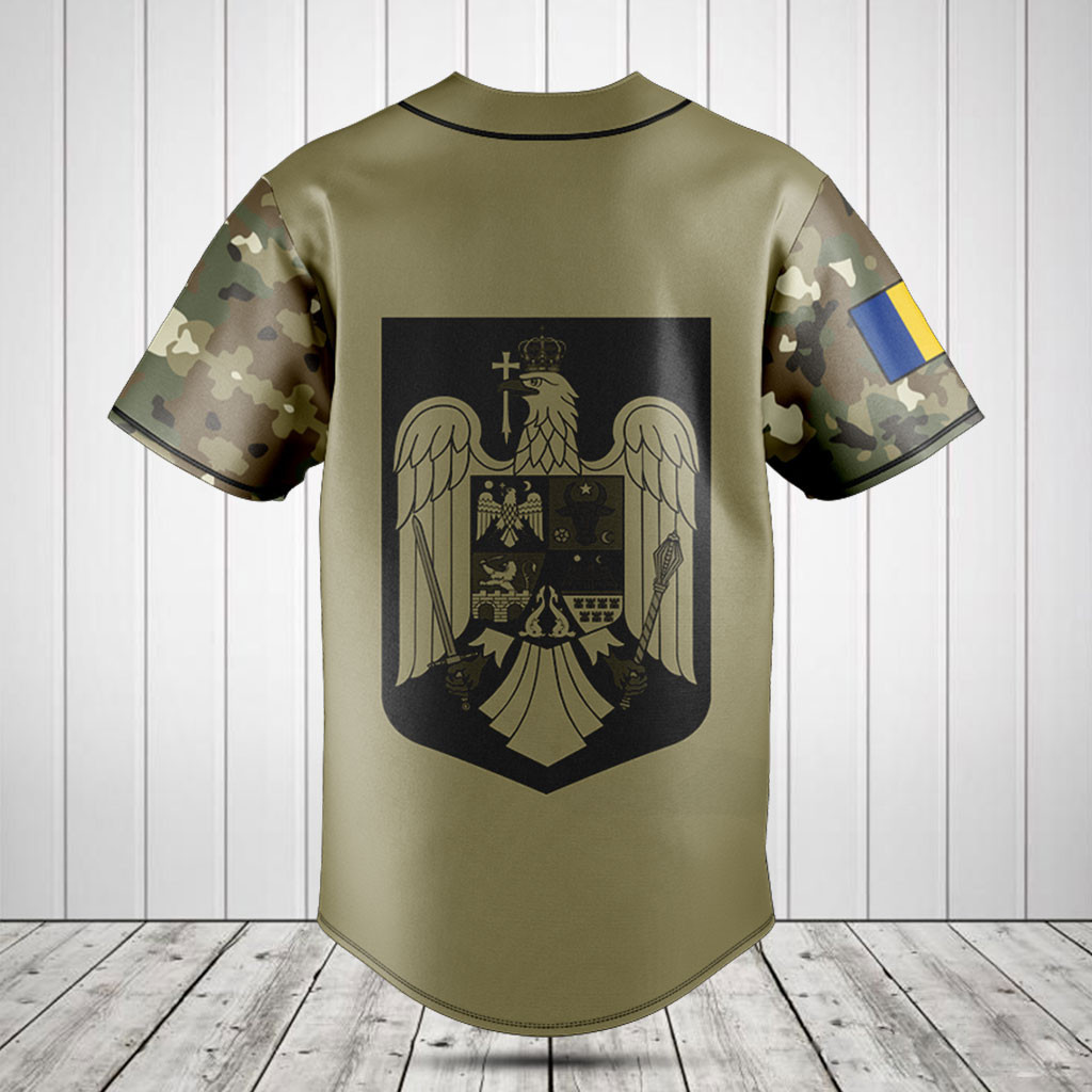 Personalized Romania Black Coat Of Arms Camo Baseball Jersey