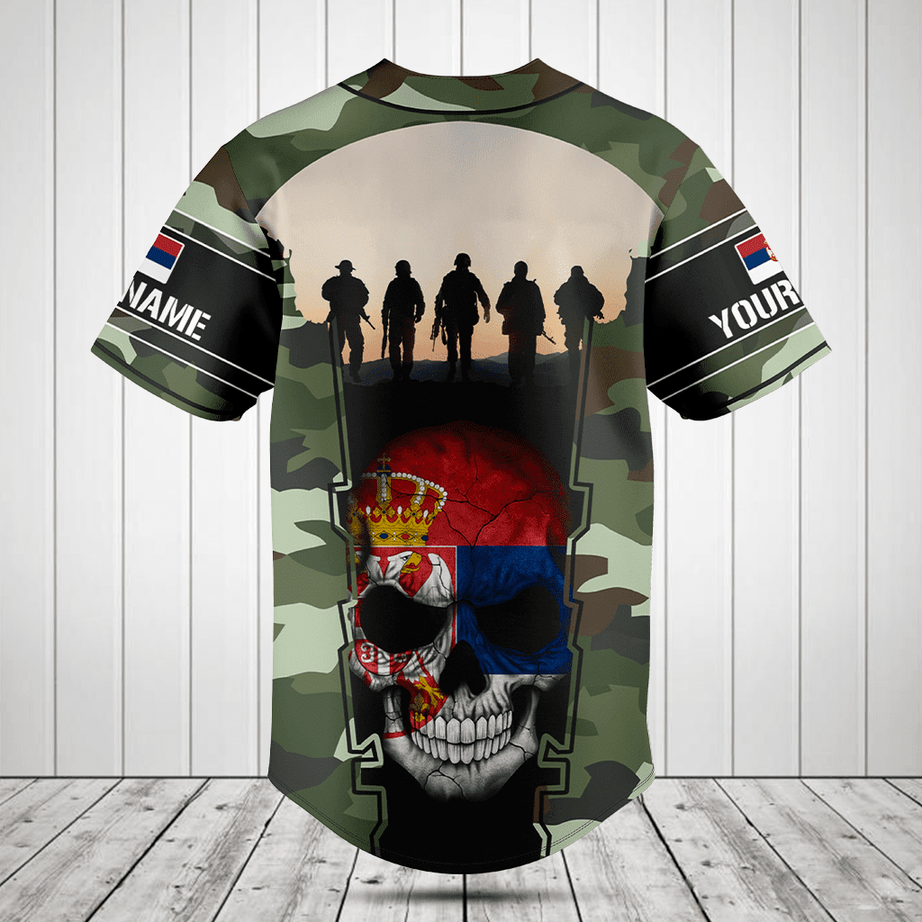 Personalized Serbia 3D Skull Flag Camouflage Baseball Jersey