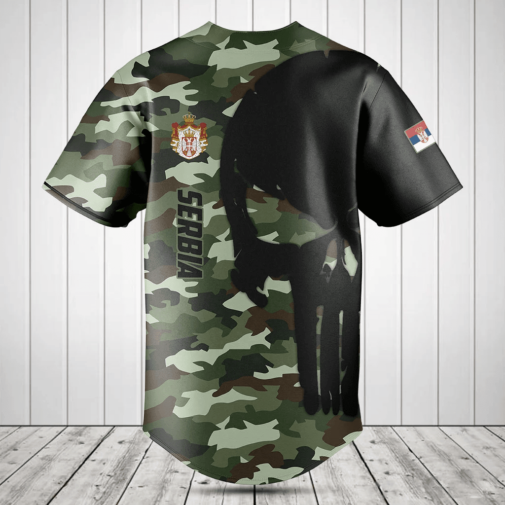 Personalized Serbia Black Skull Camouflage Baseball Jersey