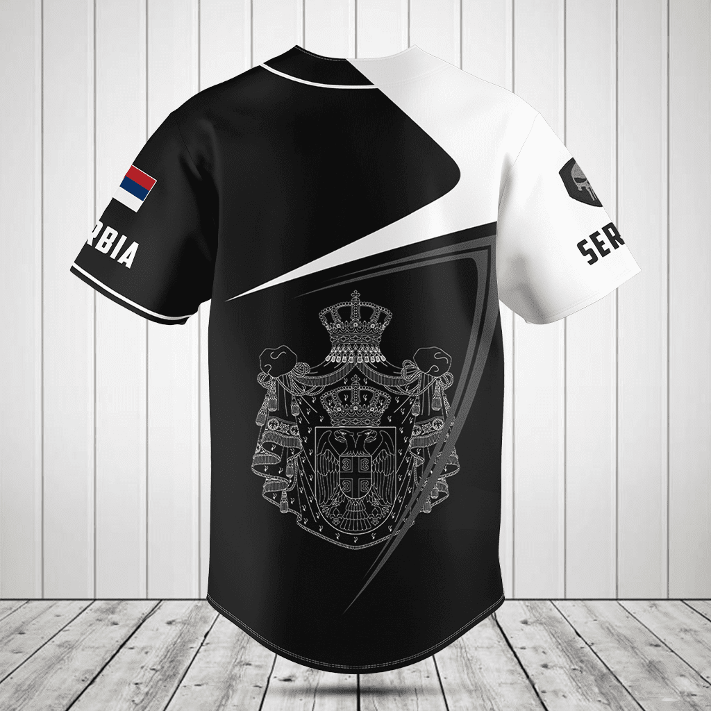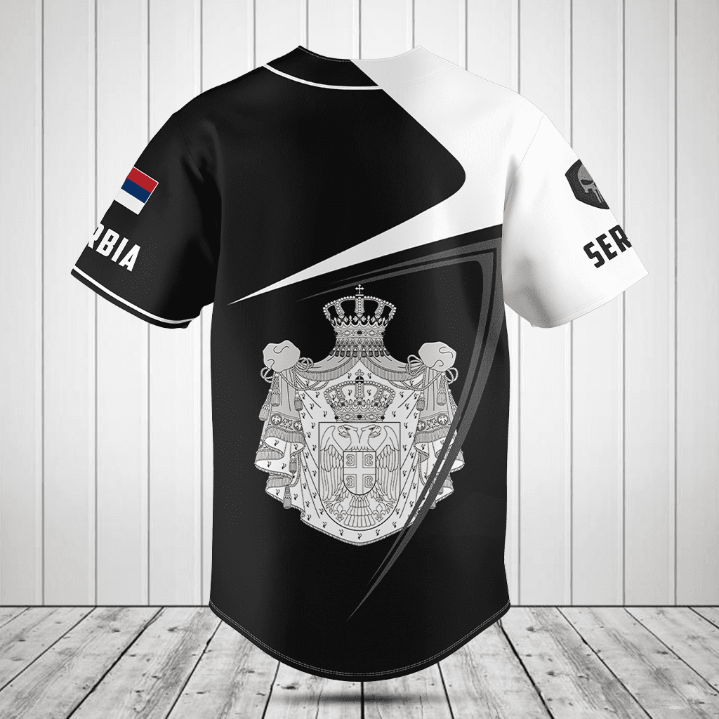 Personalized Serbia Symbol Black And White Skull Baseball Jersey