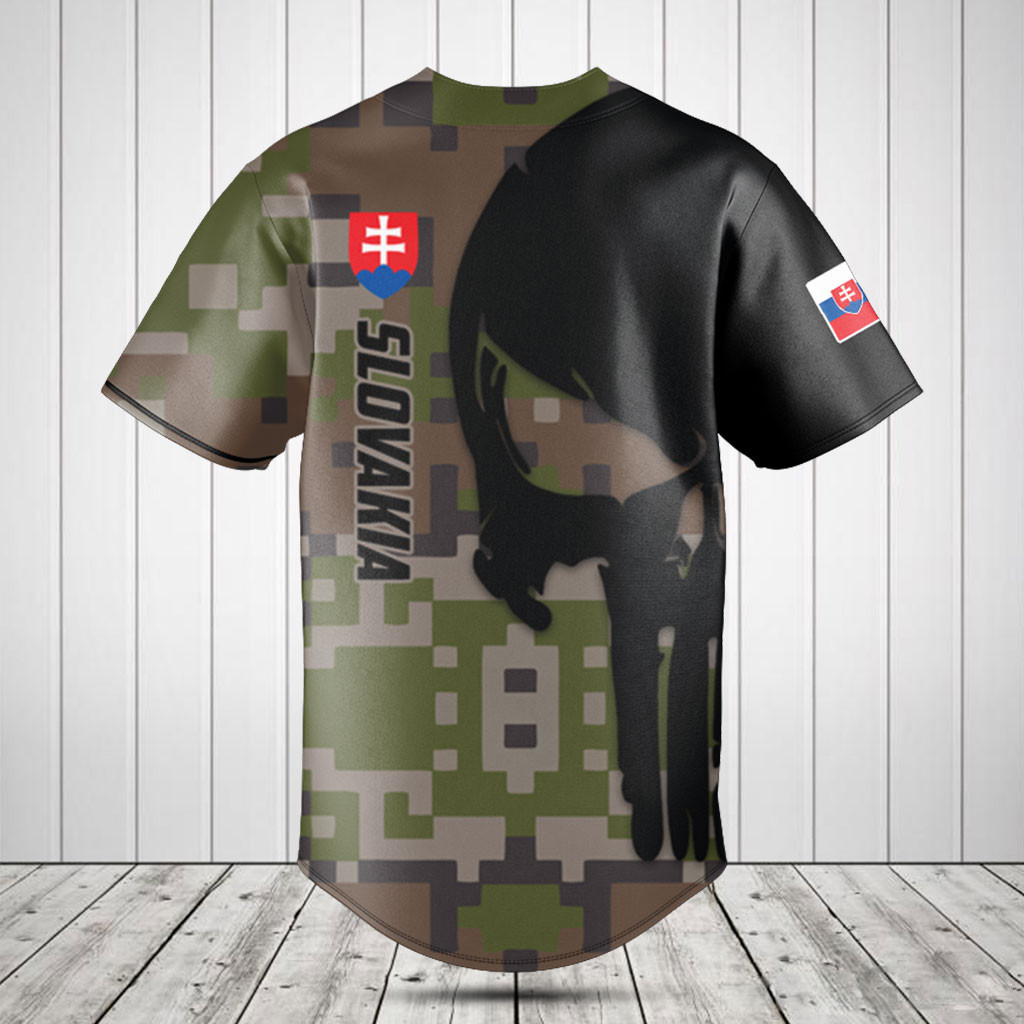 Personalized Slovakia Black Skull Camouflage Baseball Jersey