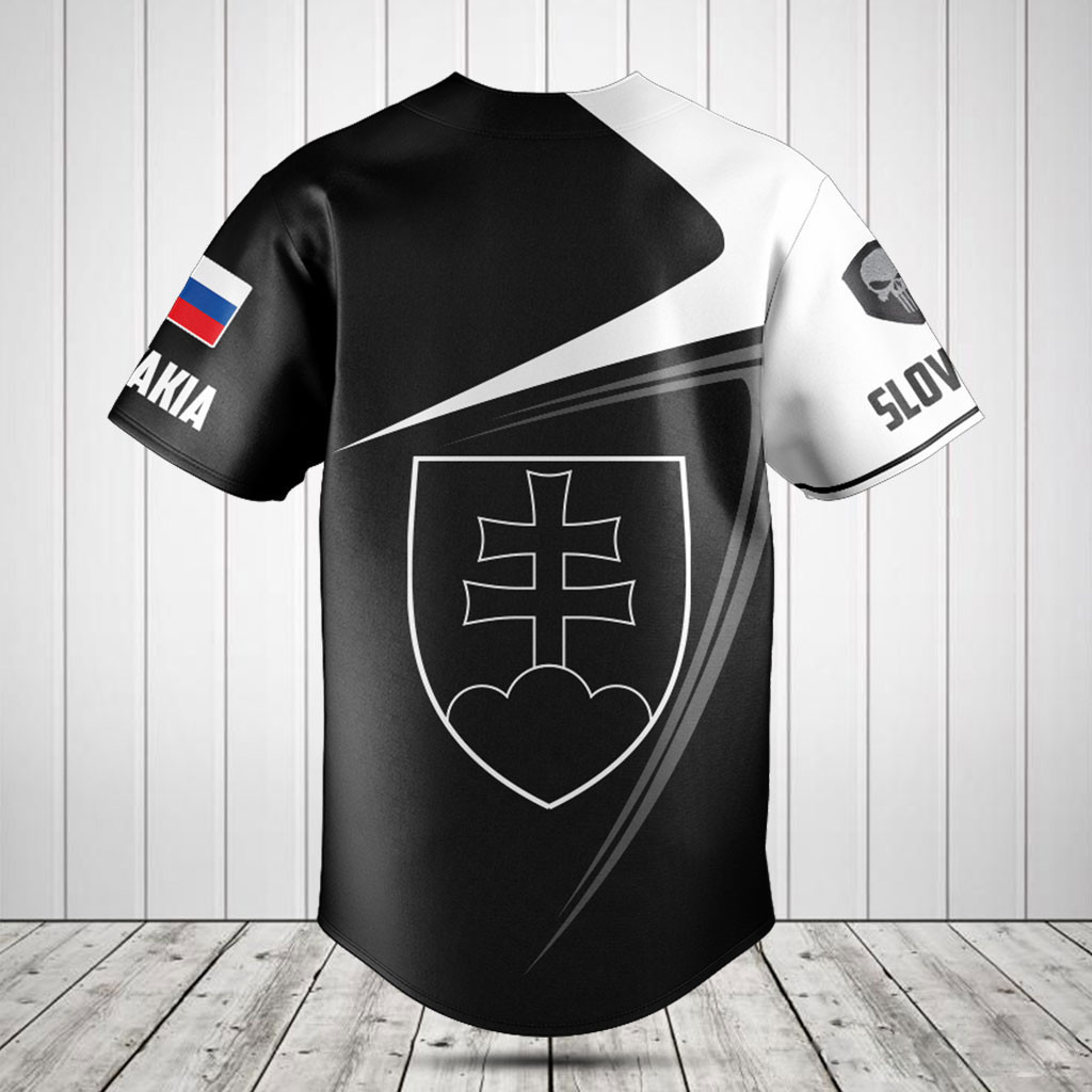 Personalized Slovakia Symbol Black And White Skull Baseball Jersey