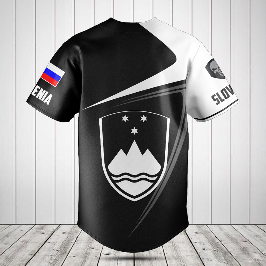 Personalized Slovenia Symbol Black And White Skull Baseball Jersey