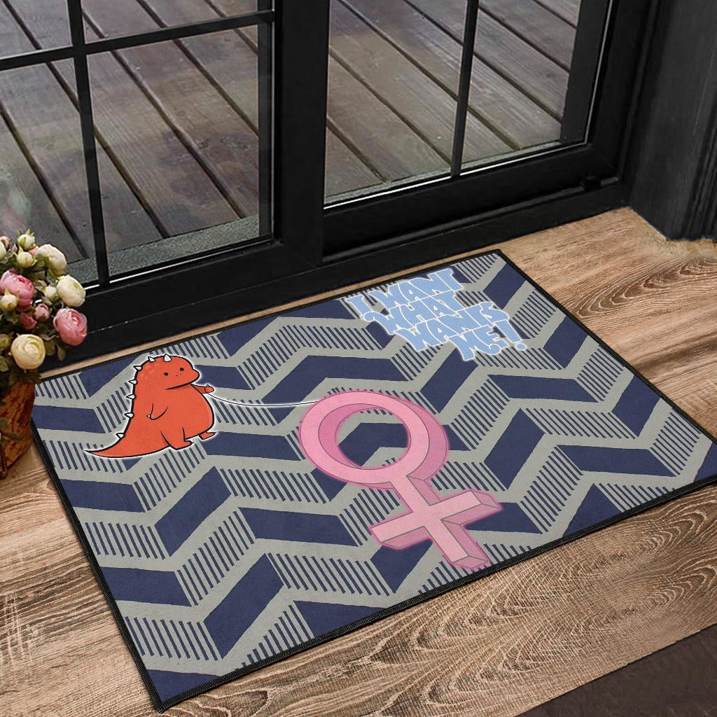 I Want What Wants Me Orange Dino Female Icon Rubber Doormat Home Decor
