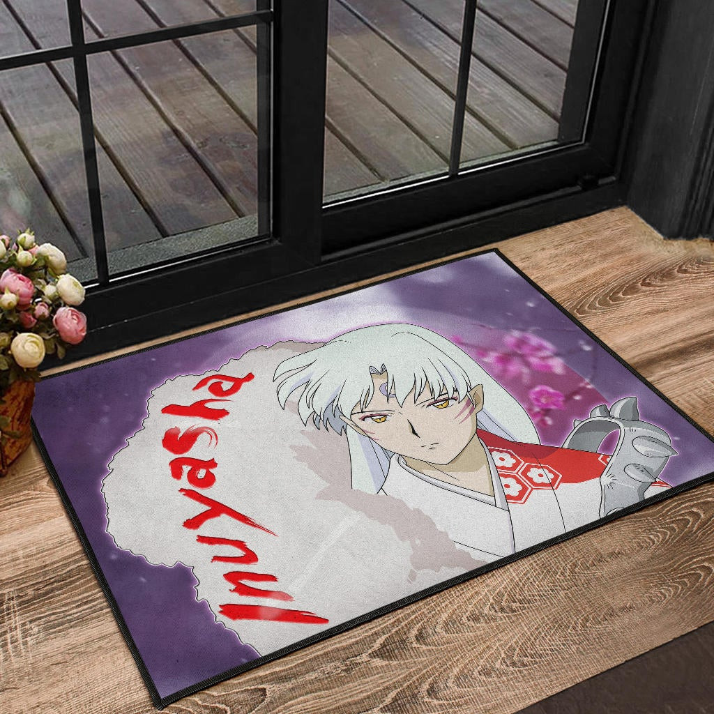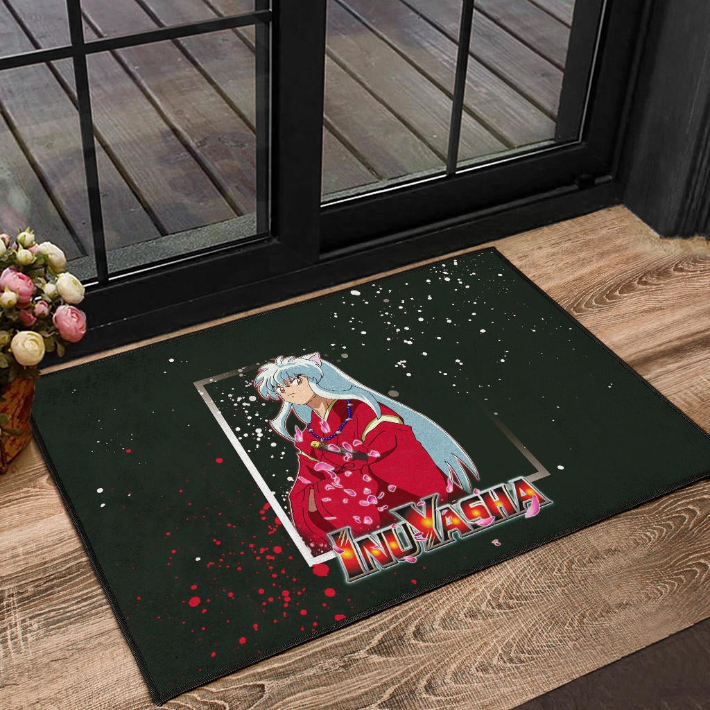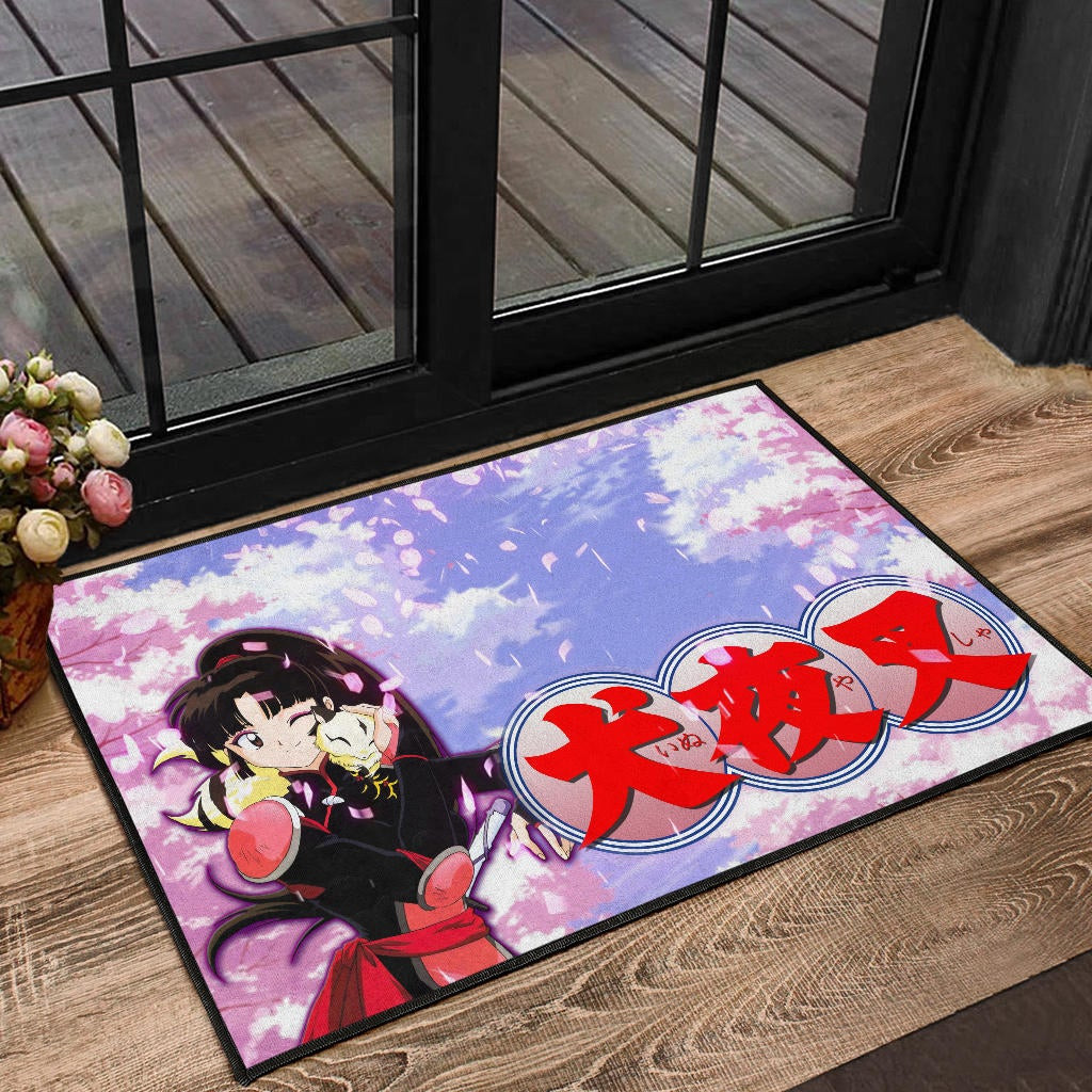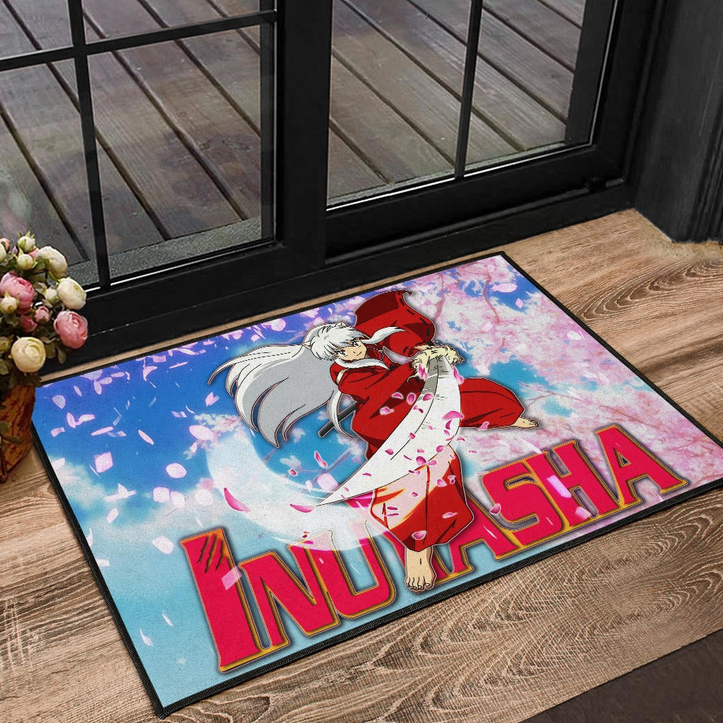 Inuyasha Anime Rubber Doormat Inuyasha Using Sword Sakura Blossom Flower Flying Rubber Doormat Home Decor