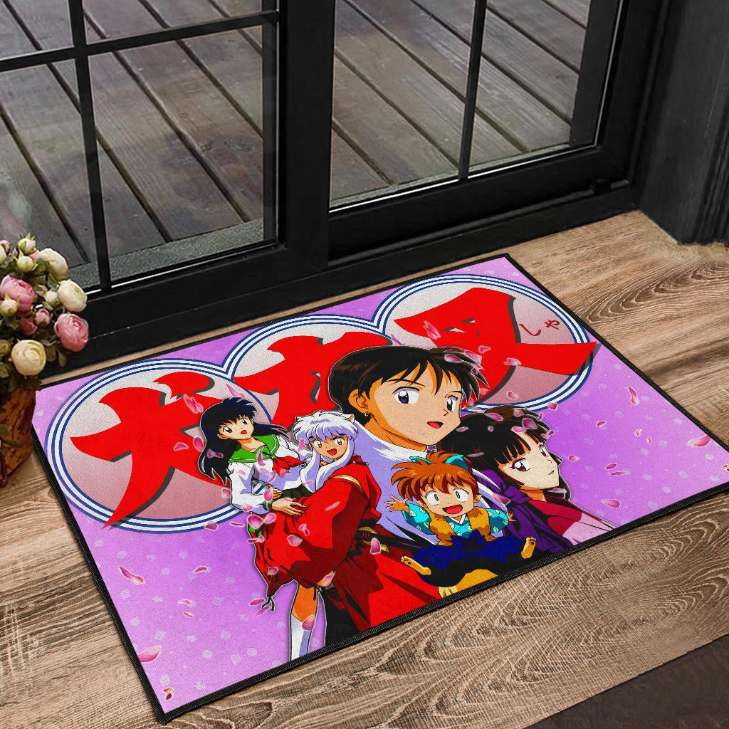 Inuyasha Anime Rubber Doormat Inuyasha Kagome And The Gang Sakura Blossom Pink Rubber Doormat Home Decor