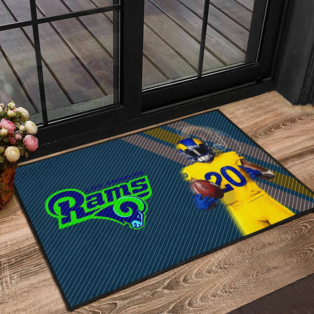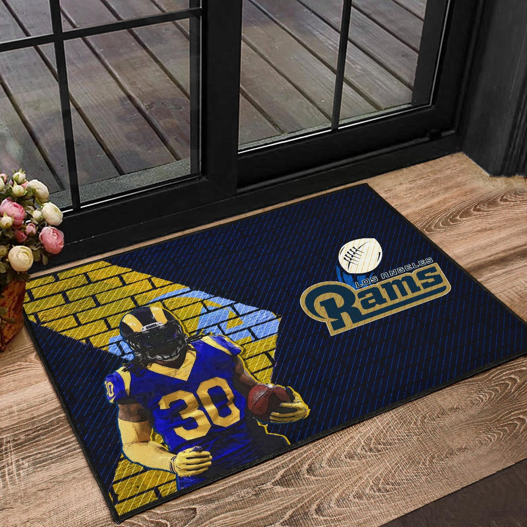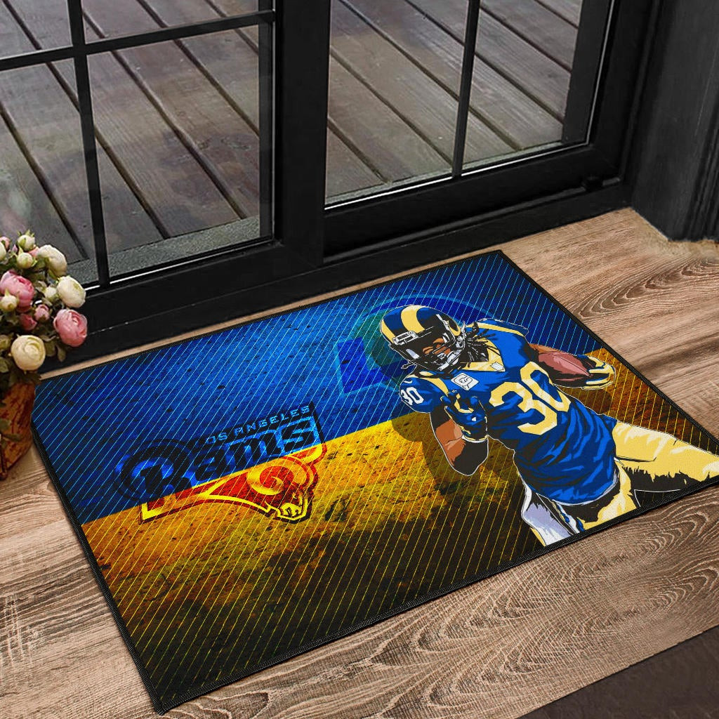 Los Angeles Rams American Football Raymond Calais 30 Grab Rugby Ball Running Blue Yellow Rubber Doormat Home Decor