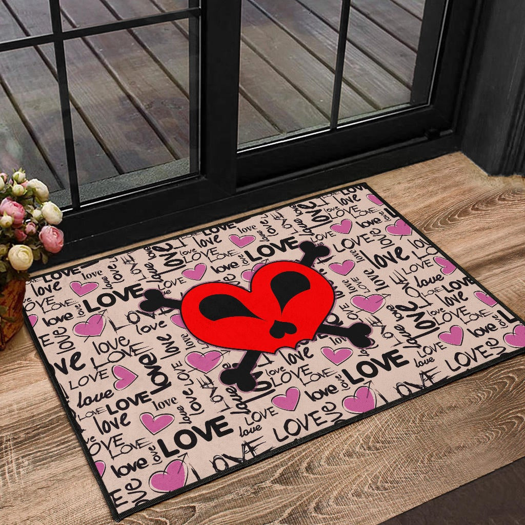 Love Rubber Doormat – Love Text Patterns Skull Heart Symbol Rubber Doormat