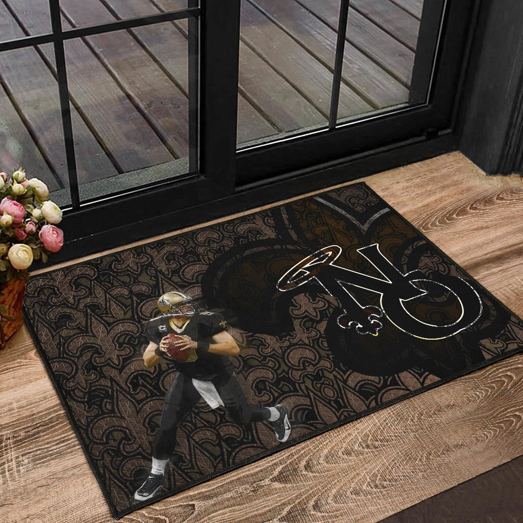 New Orleans Saints American Football Drew Brees 09 Ready To Throw Rugby Ball Saints Doodle Rubber Doormat Home Decor