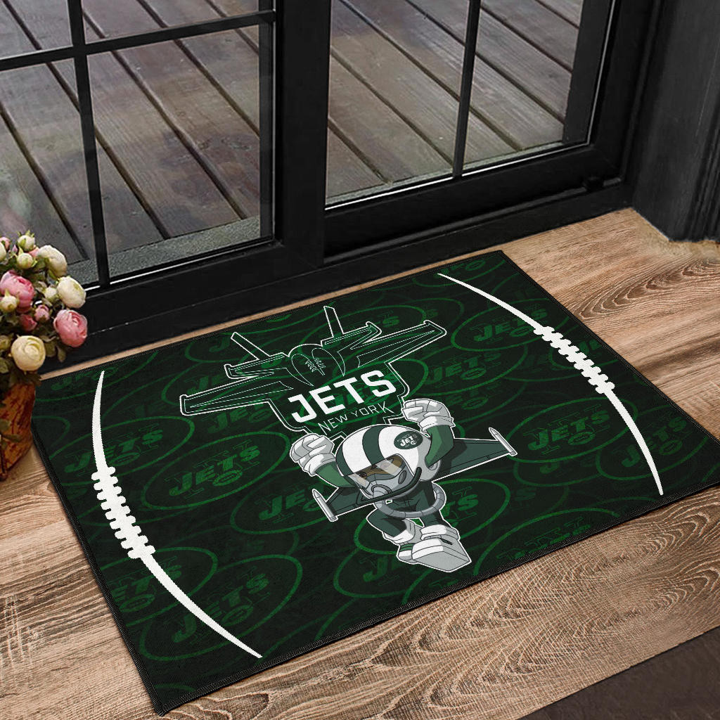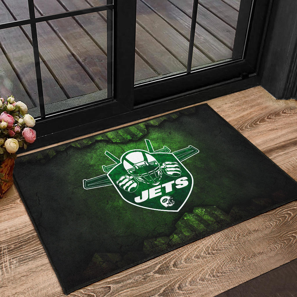 New York American Football Jets Football Rubber Doormat Cool Player Dark Green Theme Rubber Doormat Home Decor