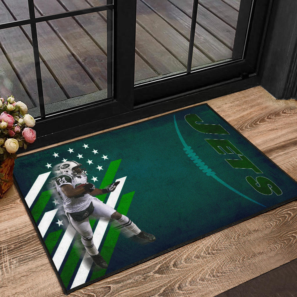 New York American Football Jets Football Player 20 Grab Rugby Ball Running Green Rubber Doormat Home Decor