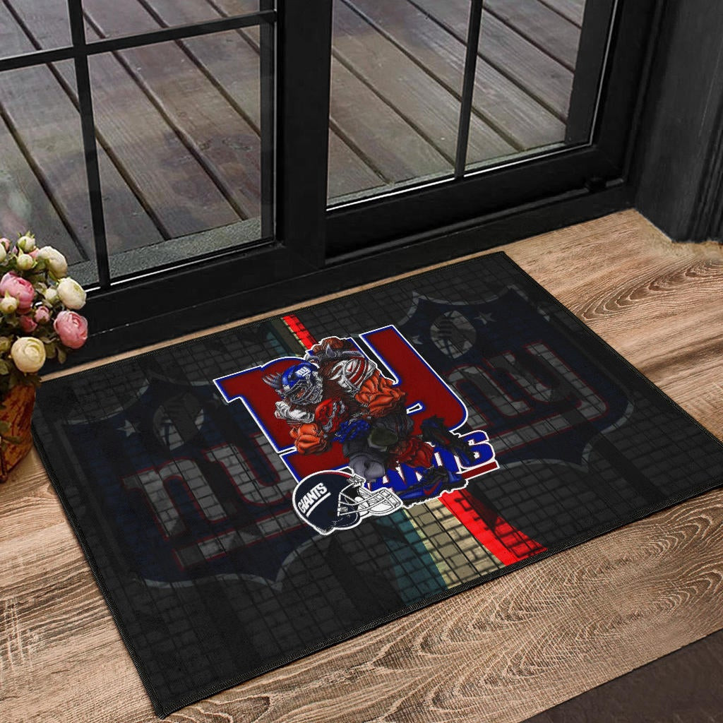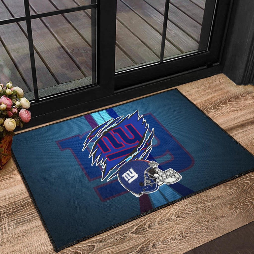 New York Giants American Football Team Rubber Doormat Claw Scratches Reveal NY Text Blue Helmet Rubber Doormat Home Decor