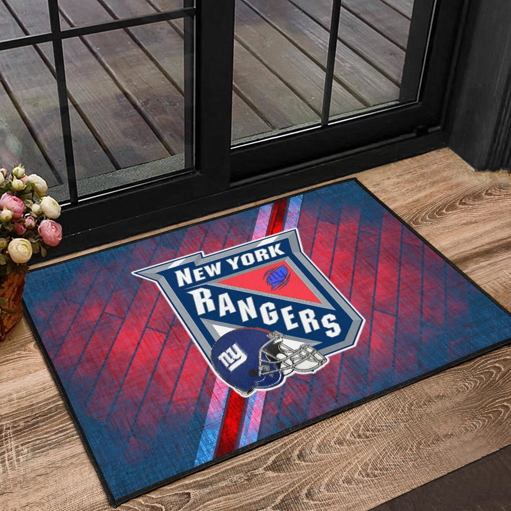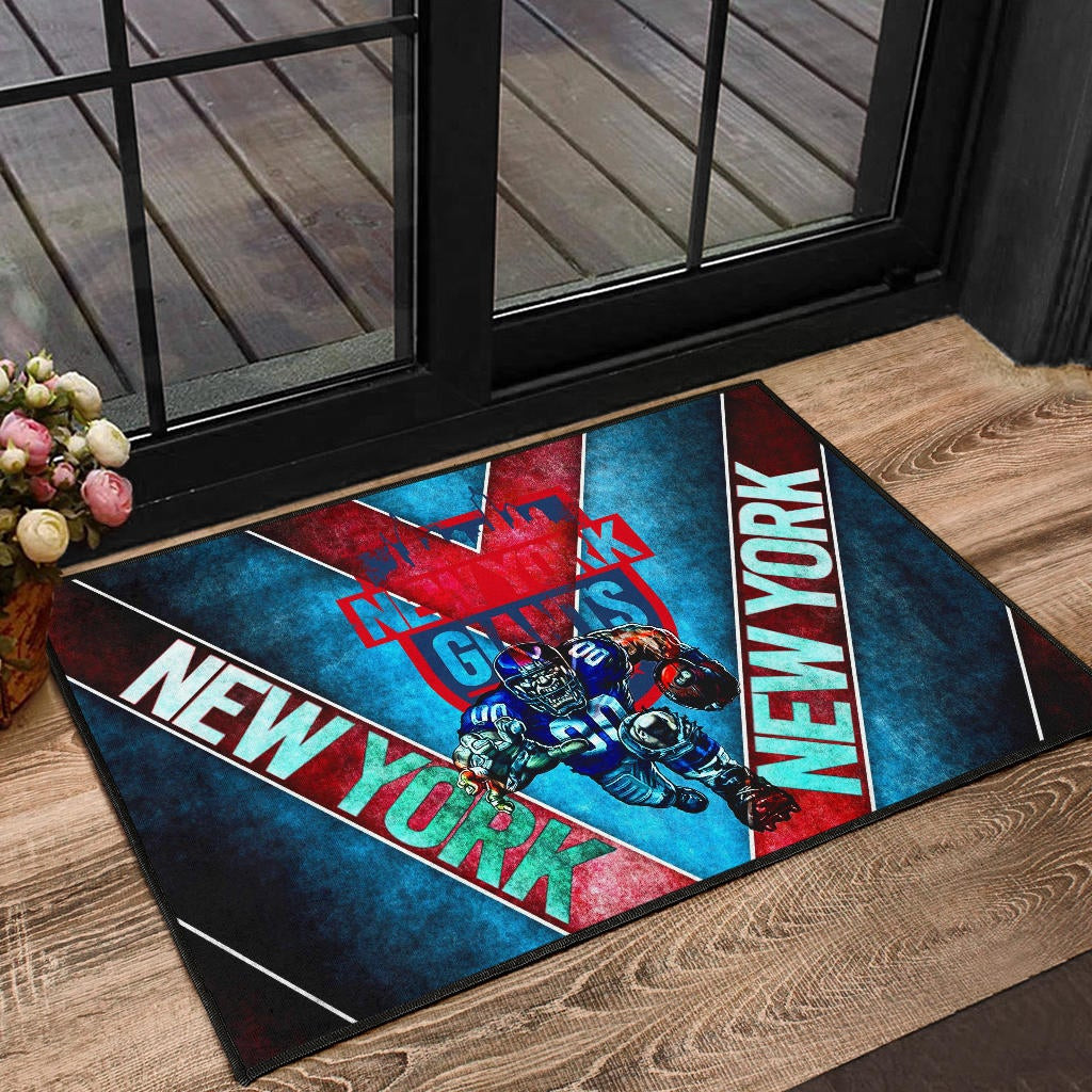 New York Giants American Football Team Rubber Doormat NY Rangers Helmet Blue Red Background Rubber Doormat Home Decor