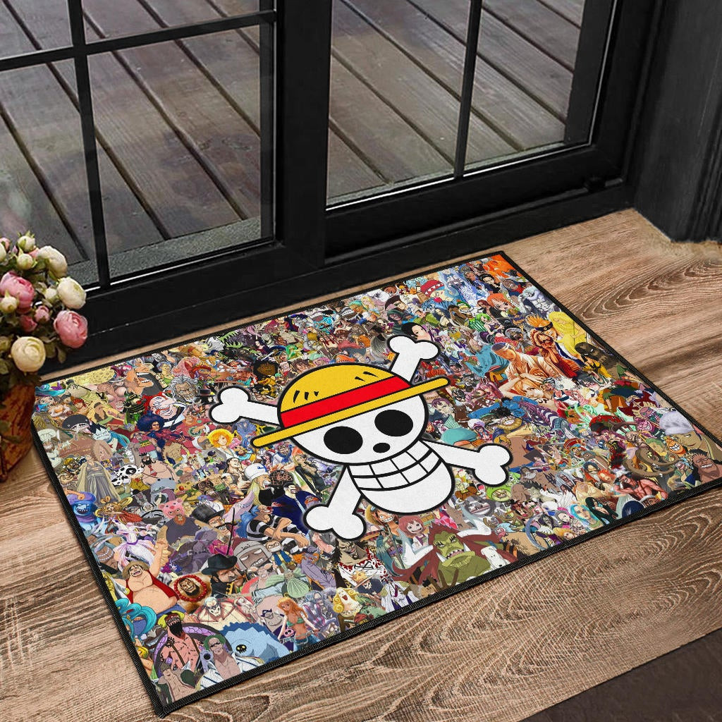 One Piece Anime Rubber Doormat – Full Characters Background Big Skull Pirate Symbol Rubber Doormat