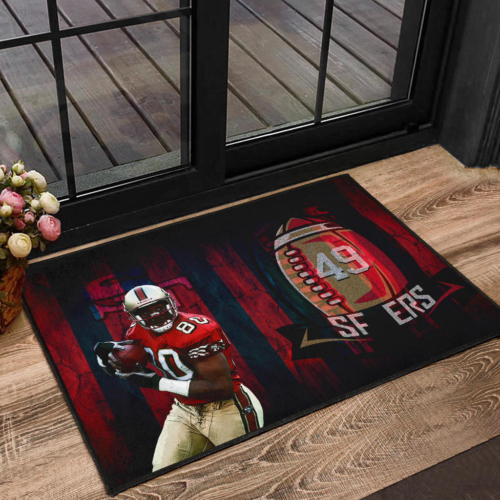 San Francisco American Football 49ers Football Rubber Doormat Player 80 Holding Ball Black And Red SF Ers Rubber Doormat Home Decor