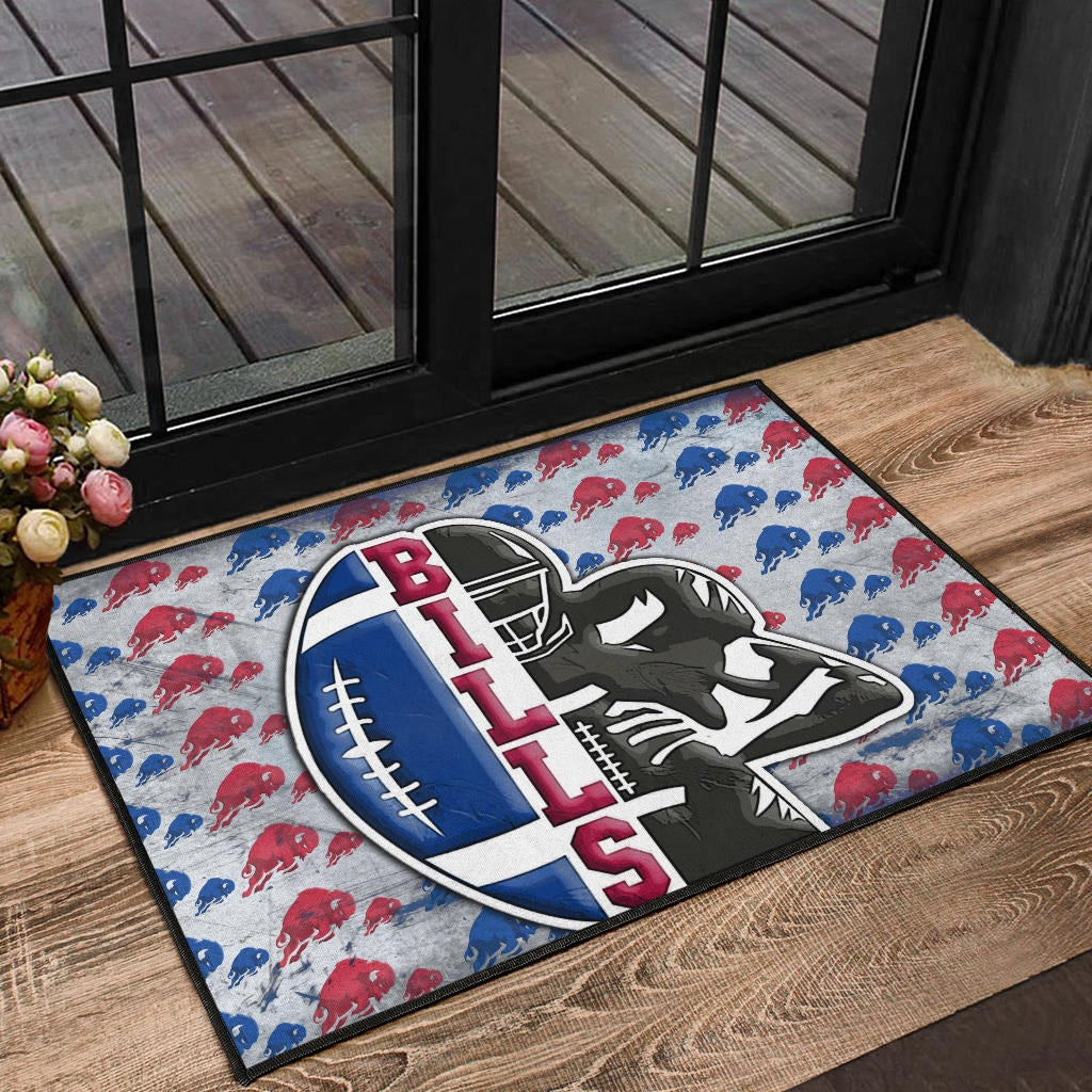 Buffalo Bills American Football Team Rubber Doormat Human Shield With Rugby Ball Buffalo Silhouette Patterns Rubber Doormat Home Decor