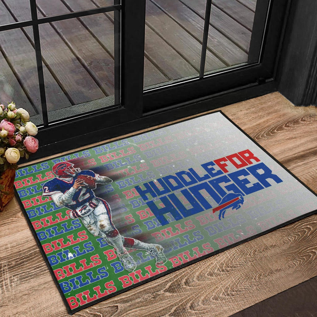 Buffalo Bills American Football Team Rubber Doormat Jim Kelly Catching Ball And Running Huddle For Hunger Rubber Doormat Home Decor