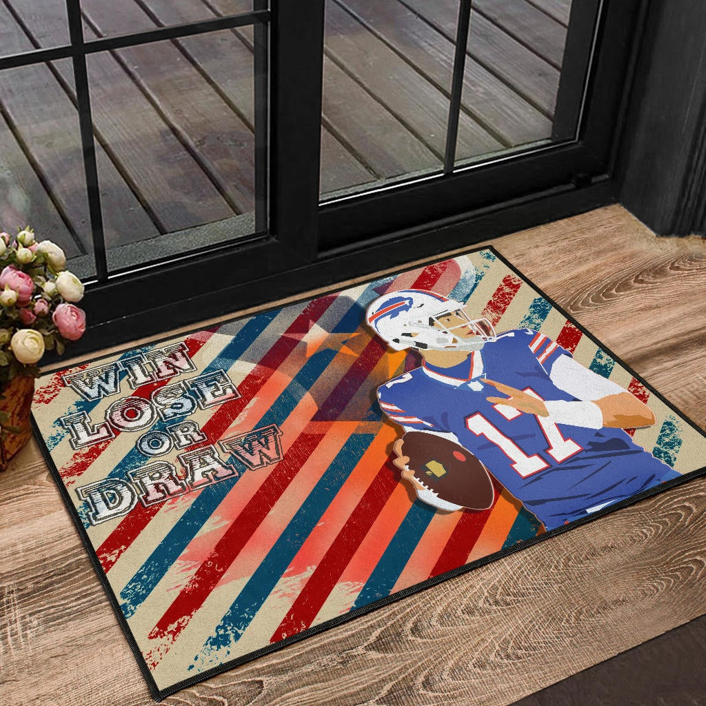 Buffalo Bills American Football Team Rubber Doormat Player 17 Attack Rugby Ball Funny Quote Win Lose Or Draw Rubber Doormat Home Decor