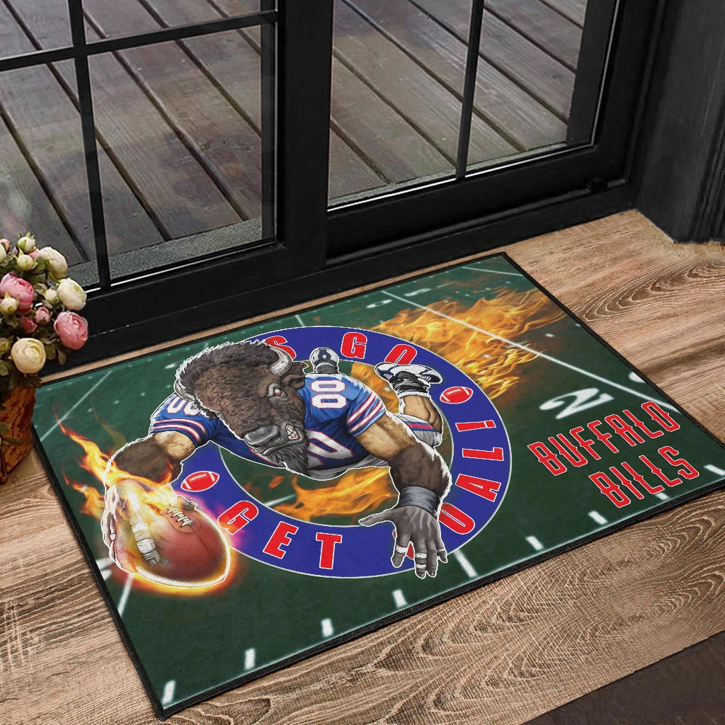Buffalo Bills American Football Team Rubber Doormat Player With Buffalo Head Holding Flaming Rugby Rubber Doormat Home Decor