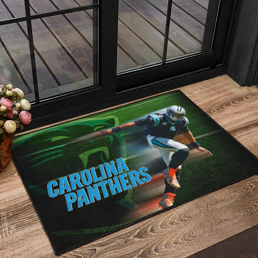 Carolina Panthers American Football Cam Newton Running Lightning Speed Rubber Doormat Home Decor