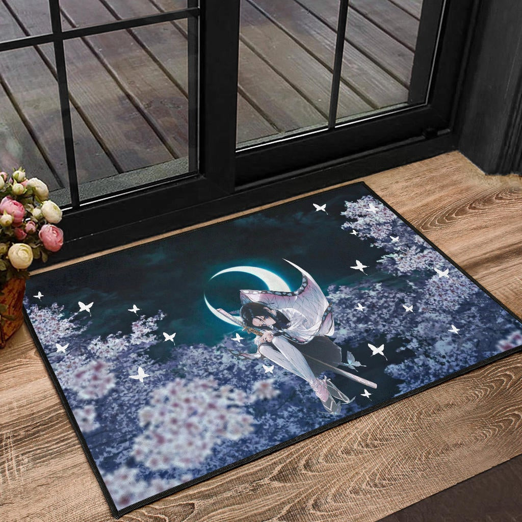 Demon Slayer Anime Lonely Shinobu With Butterflies Night Moon Rubber Doormat Home Decor