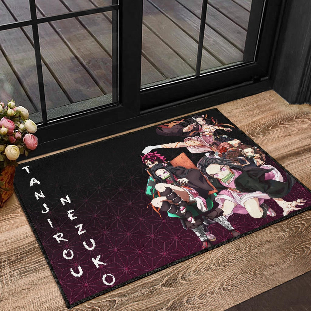 Demon Slayer Anime Main Characters Tanjiro Nezuko Zenitsu And Inosuke Fighting Rubber Doormat Home Decor