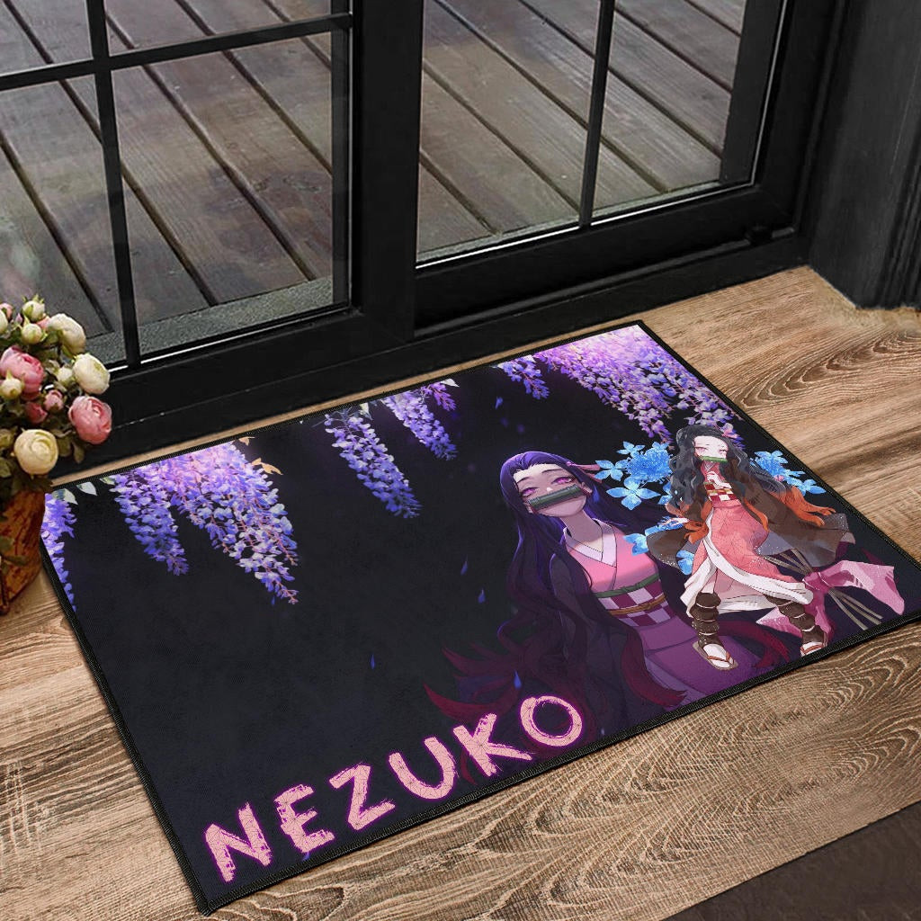 Demon Slayer Anime Pretty Nezuko Kamado Purple Flower Theme Rubber Doormat Home Decor