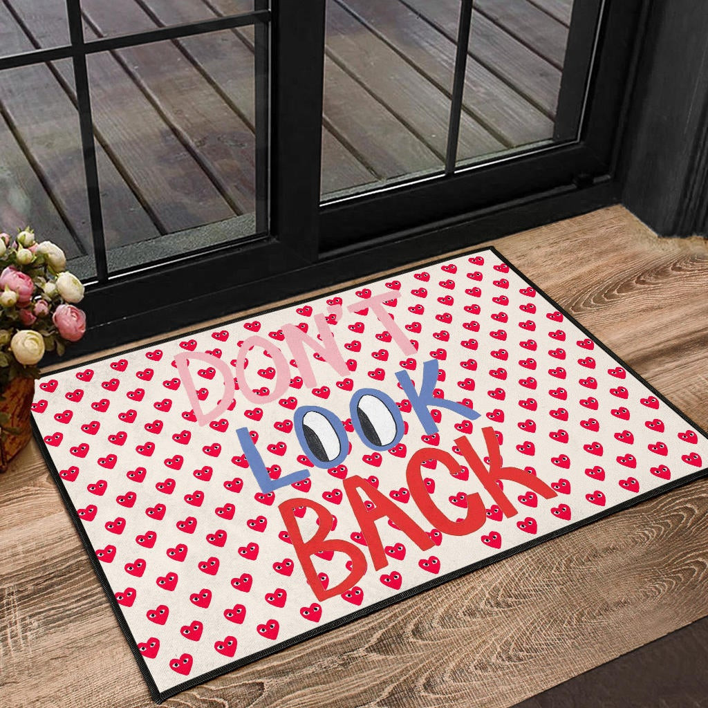 Don’t Look Back Red Heart Patterns Rubber Doormat Home Decor