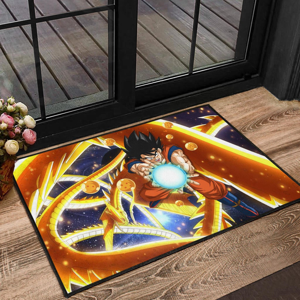 Dragon Ball Anime DB Goku Fighting With Golden Shenron Dragon Rubber Doormat Home Decor