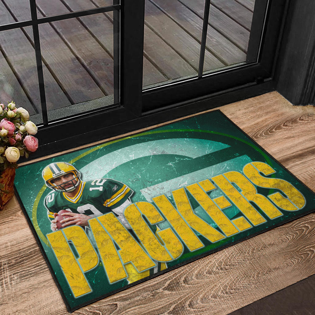 Green Bay American Football Packers Aaron Rodgers Ready To Throw Rugby Ball Rubber Doormat Home Decor