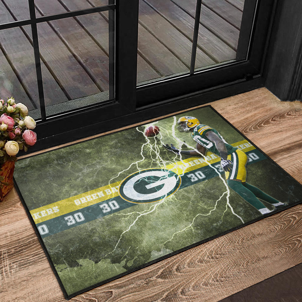 Green Bay American Football Packers Ahman Green 30 Lightning Rugby Ball Rubber Doormat Home Decor