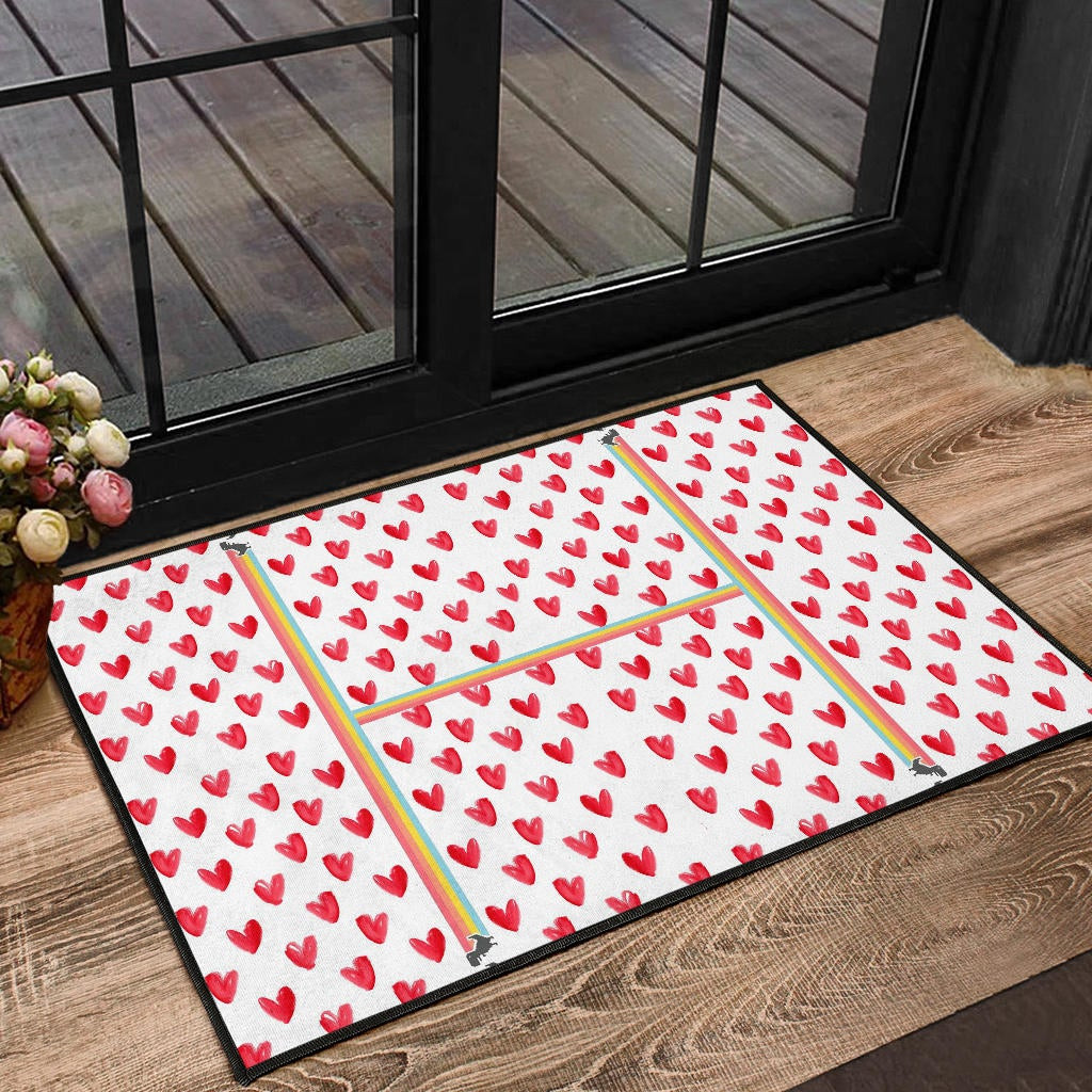H-appy GG Dino Cute Red Heart Patterns Rubber Doormat Home Decor