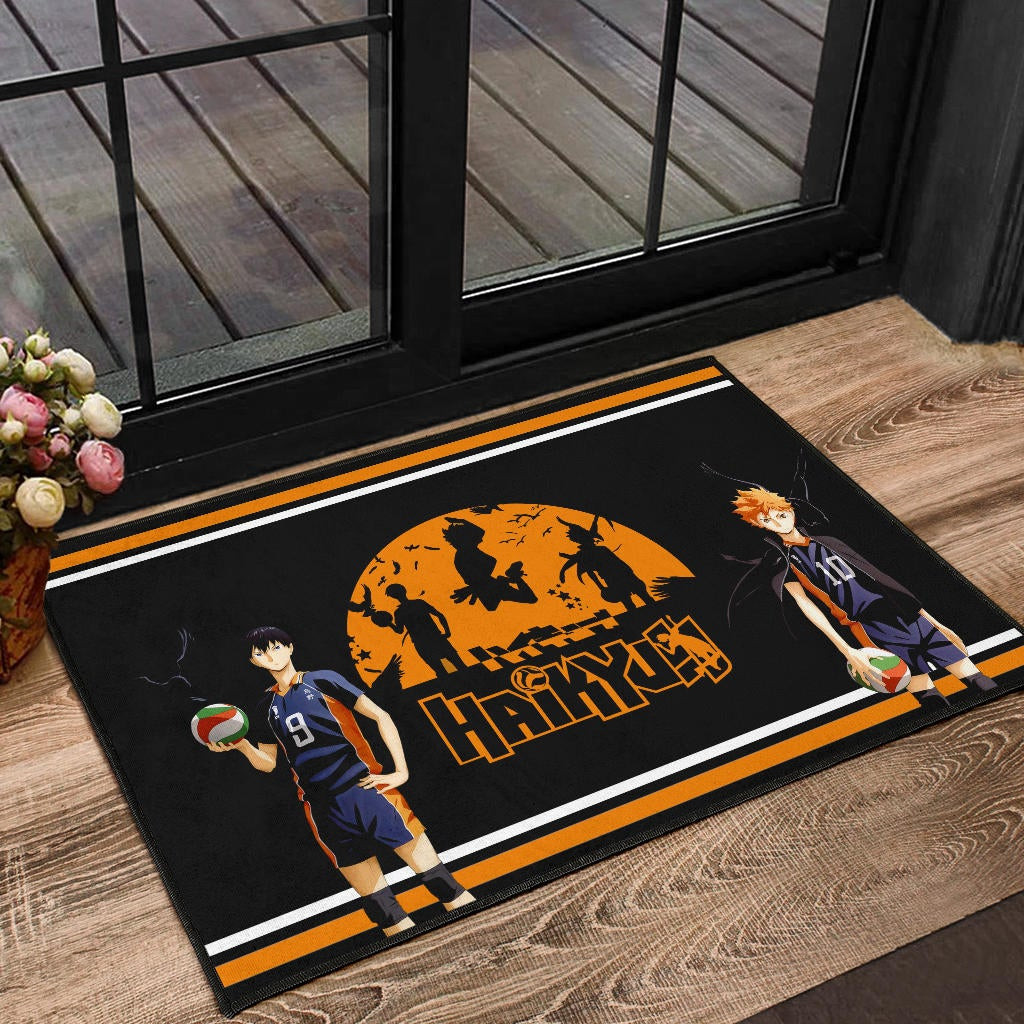 Haikyuu Anime Rubber Doormat – Hinata Shoyo And Kageyama Play Volleyball Silhouette Rubber Doormat