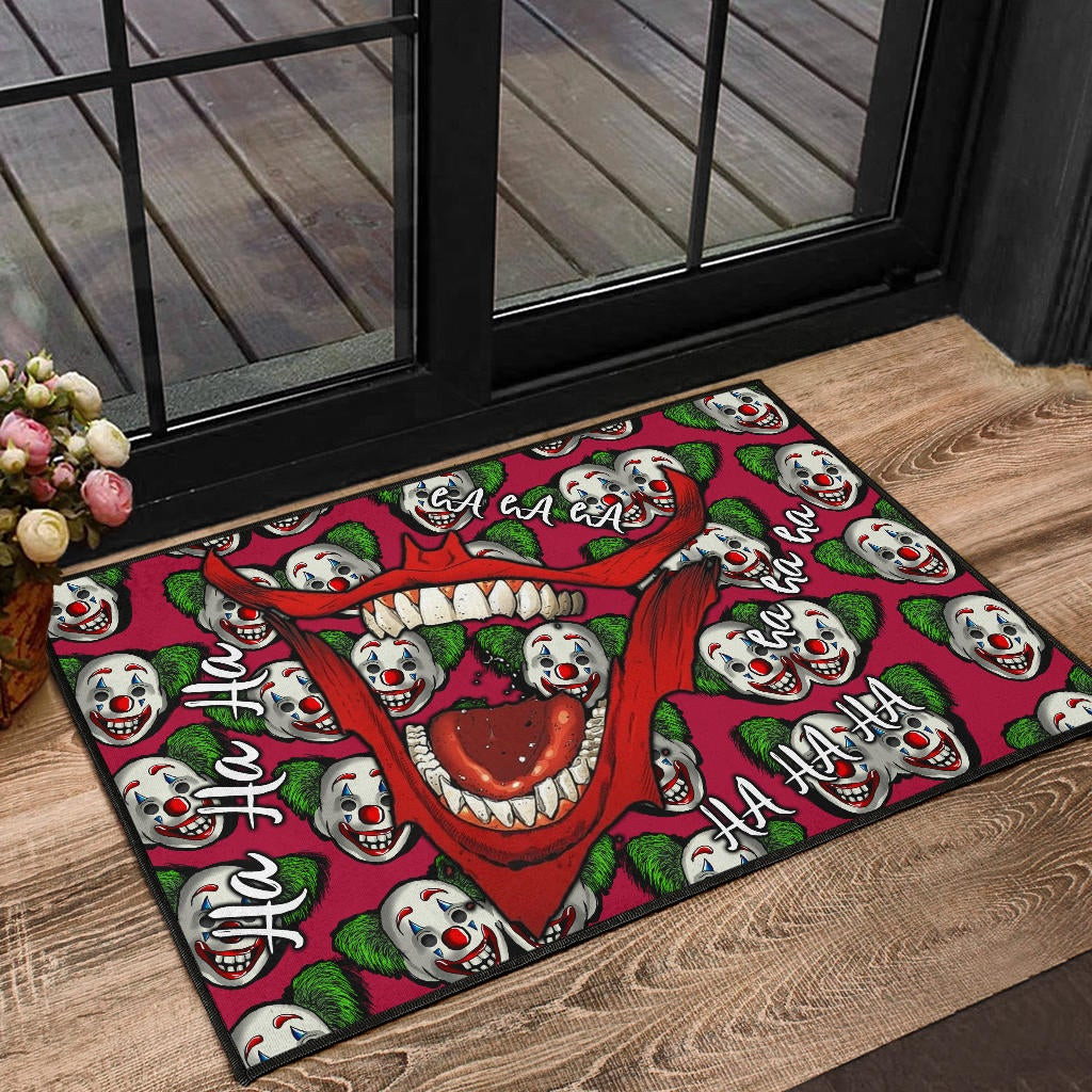 Horror Movie Joker Laughing Mouth Joker Clown Face Patterns Rubber Doormat Home Decor