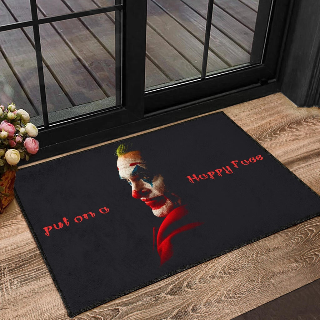 Horror Movie Joker Quote Put On A Happy Face Rubber Doormat Home Decor