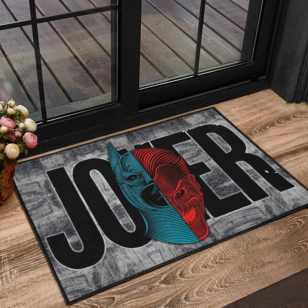 Horror Movie Joker Text Half Batman Half Joker Face Rubber Doormat Home Decor