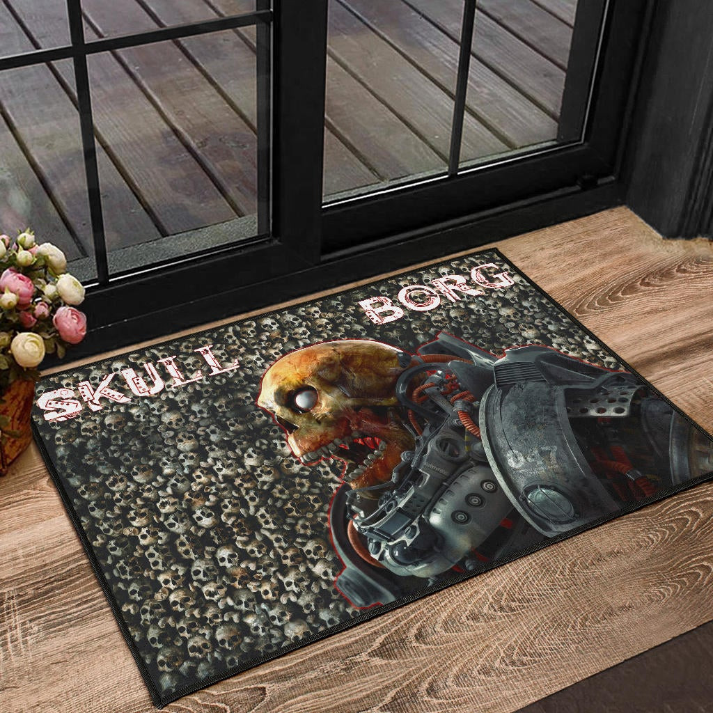 Horror Movie Robot Skullborg Skull Background Rubber Doormat Home Decor
