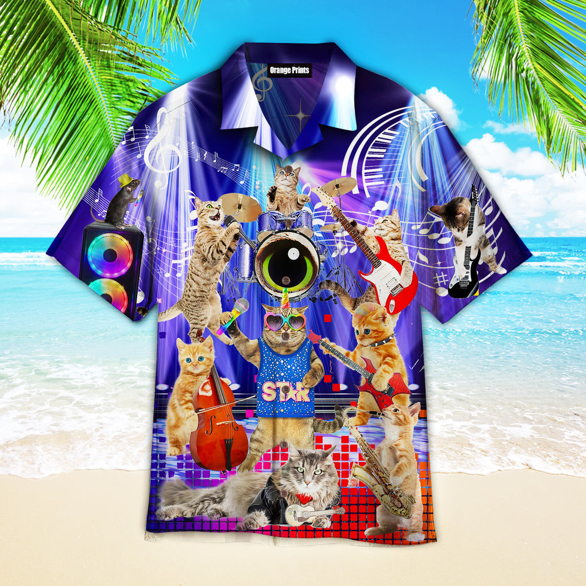 Cat Play Guitar Rocker Music Style Hawaiian Shirt