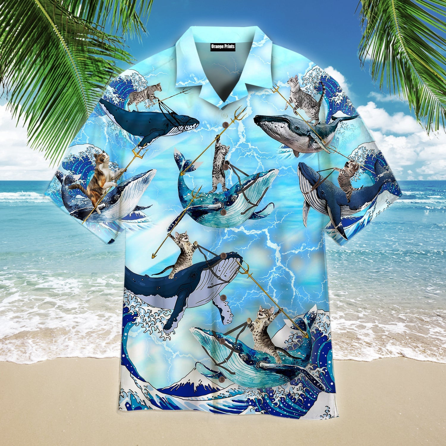 Cat Riding Whale In Ocean Hawaiian Shirt
