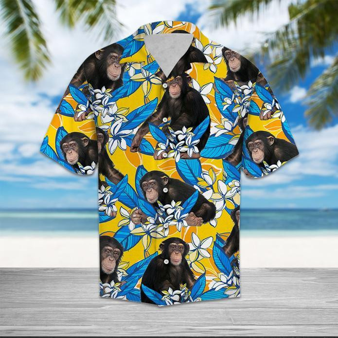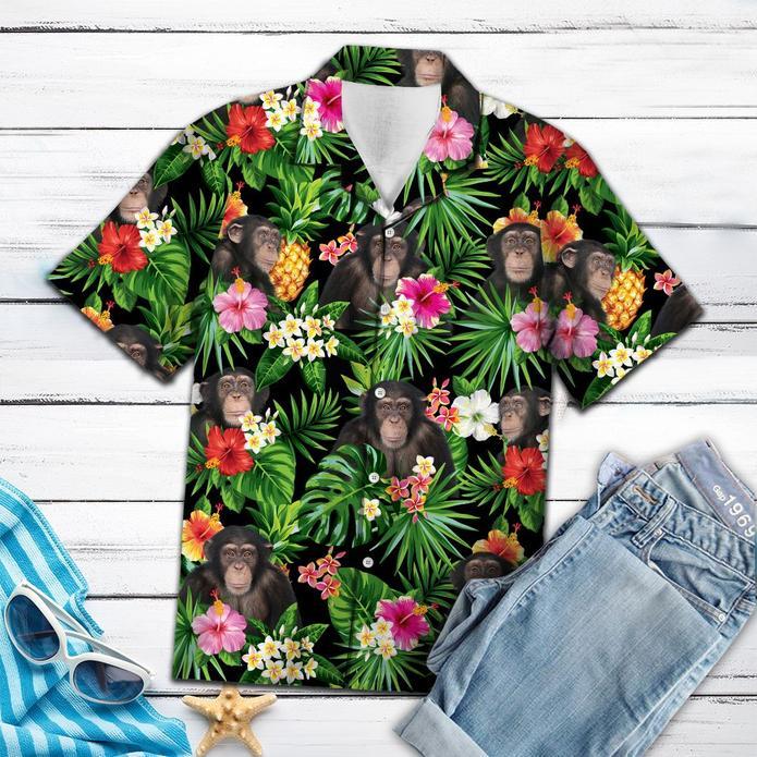 Chimpanzee Plumeria Flowers Hawaiian Shirt